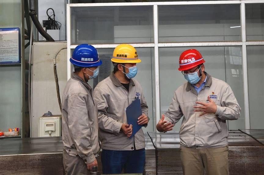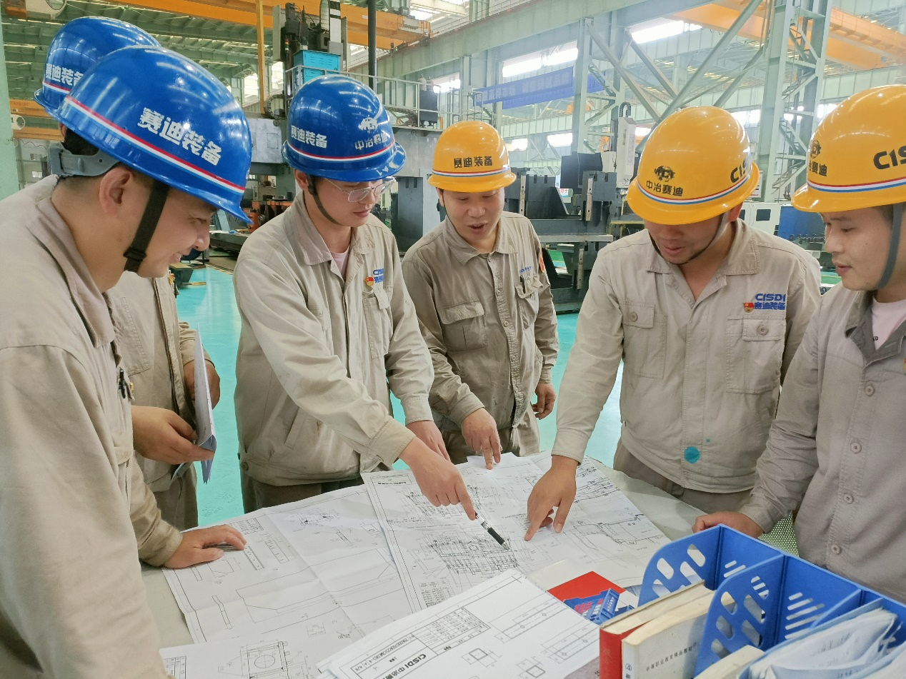 六安、盛隆連鑄項目黨員突擊隊由第三黨支部副書記、總裝車間主任廖靖擔(dān)任隊長,組員涵蓋設(shè)計、工藝、鉚焊、機(jī)加、裝配等專業(yè)。他們在做好本質(zhì)工作的前提下,積極引導(dǎo)本部門員工響應(yīng)公司號召,突顯攻堅克難精神。面對疫情所帶來的原材料回貨延期、多項目并行導(dǎo)致的工期緊張等方面的困難,突擊隊提前謀劃、統(tǒng)籌安排,有條不紊完成了前期的設(shè)計和工藝編排;生產(chǎn)攻堅期間恰逢端午節(jié),團(tuán)隊放棄休假奮戰(zhàn)在各條戰(zhàn)線上,積極推進(jìn)督促、充分溝通協(xié)調(diào)、加緊生產(chǎn)制造,各項工作有條不紊推進(jìn)。